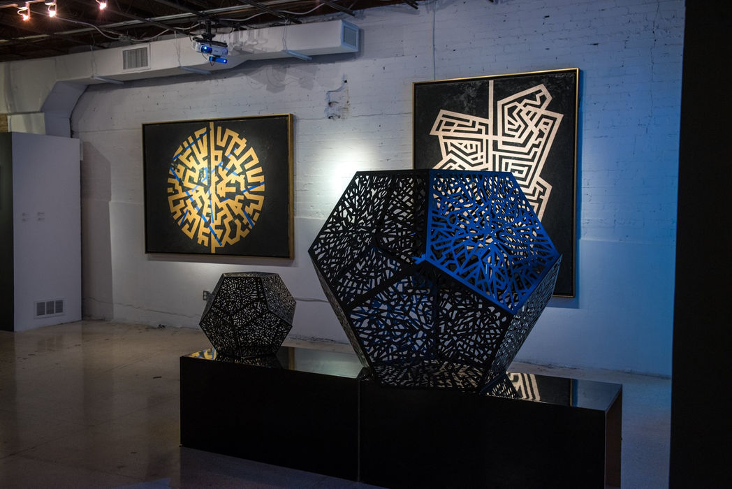 Meet artists Synthestruct, Matt Roberts, and Jesse James. Experience Augmented Reality art, enjoy a projection mapped art installation, create an abstract version of your projected self, and design patterns by entering words to search Twitter.