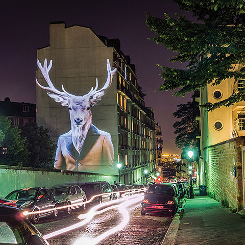 SAFARI URBAIN is a series of photographs featuring animals redesigned and projected on facades of buildings through an embedded video-projection system. A visual artist and founding member of Le3 creative studio, Julien Nonnon’s work essentially articulates the interaction of his creations with the architecture and urban elements surrounding him. This process has brought numerous artistic projects to completion, combining street art, kinetic installations, digital creations and video mapping. Showing the desire to see his works in the street, he developed his own tools allowing him therefore to project his creations in any location that inspires him. His work has been featured in The Huffington Post, NBC News, Design Boom, Inside Art, Architectural Digest, Vice, The Post Internazionale.
